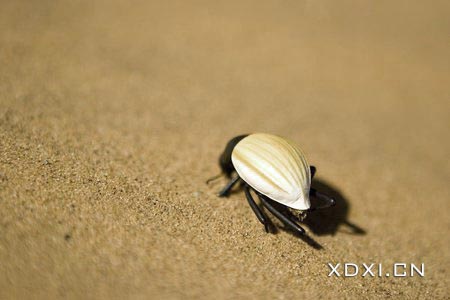 沙子里,它鉆出沙子后向前滾動(dòng)著身子,要么向一側(cè)蠕動(dòng)前行。