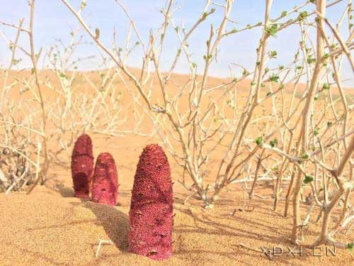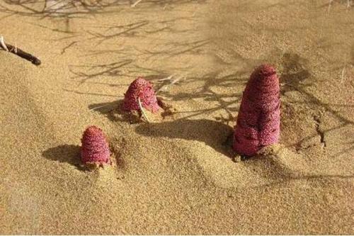 在干旱的沙漠地帶,鎖陽和蓯蓉是絕好的藥食兩用沙漠特種食材和補(bǔ)品,通 常漠外人很難發(fā)現(xiàn)它的蹤跡,如巧遇下雨,則雨后天晴時(shí),藏在沙子里的鎖陽和蓯蓉會(huì)羞答答地露出頭,可采食, 這通常是在夏秋季節(jié)。