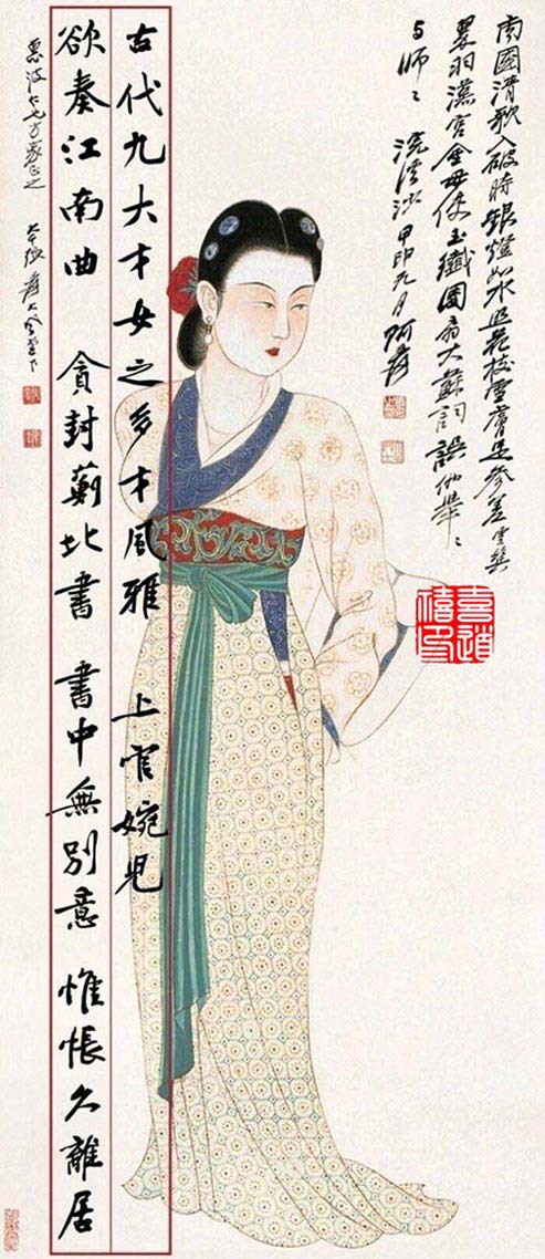 薛濤(約768~832年),字洪度,京兆長安(今西安)人。唐代女詩人,美曜玫瑰,華茂春松,成都樂師。16歲入樂籍,與韋皋、元稹有過戀情,薛濤自制桃紅色小箋用來寫詩傳情,后人仿制,稱“薛濤箋”。脫樂籍后,終身未嫁。
