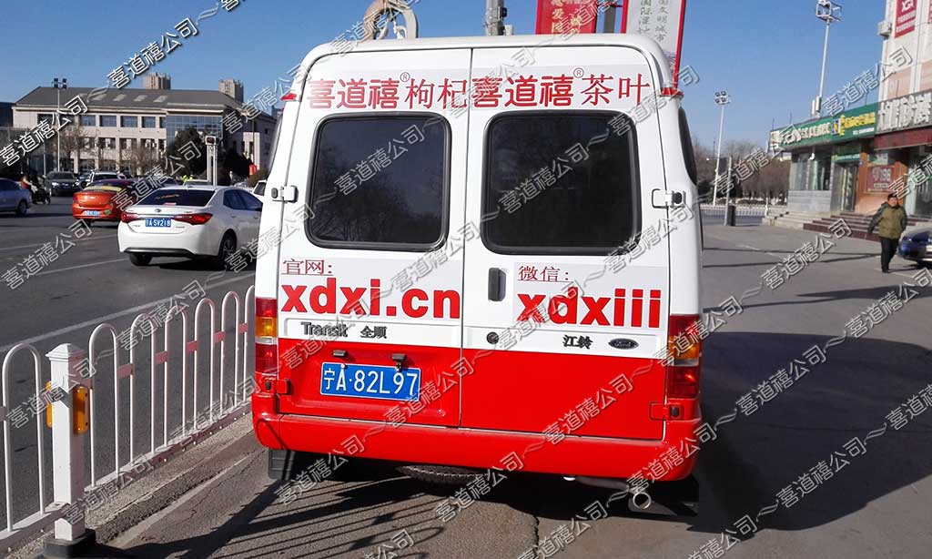 目前,從車的全局來看,較滿意,車的整體布局為步步高升之勢,字是足夠的大,醒目,即是宣傳車又是服務車;有限空間承載的信息多,最重要的是金牌產(chǎn)品匹配商務寬體車的成本是巨大的,這也是對喜道禧加盟商的最大支持,同時又是對客戶的高度負責!