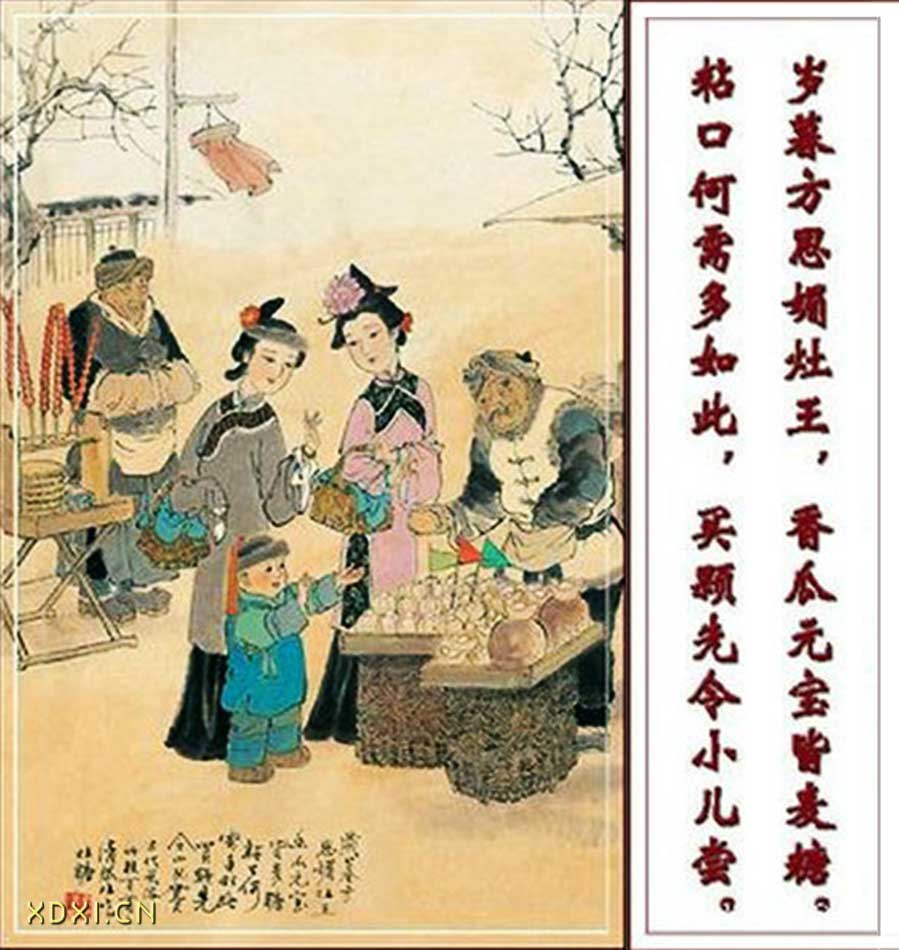 古時,廿三日更盡時,家家祀灶,院內立桿,懸掛天燈。祭品則羹湯灶飯、糖瓜糖餅,飼神馬以香糟炒豆水盂。男子羅拜,祝以遏惡揚善之詞。婦女于內室,掃除爐灶,以凈泥涂飾,謂曰掛袍,燃燈默拜。此日以糖餅、年糕、棗、栗、胡桃等祀灶神,其與土地均天去,呈報家善惡,祈求美讚少弊語。灶王爺一說是火神祝融,一說名髻或隗,狀若美黛。然,灶王爺、土地爺均天琛珩,除夕夜前,百冇禁忌。中華的雋煒輿非遺,我們傳承與永眈。