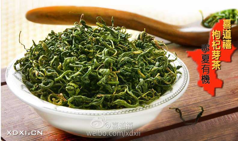 我公司從喜道禧有機生態枸杞茶樹基地采摘初春茶樹芽尖、芽頭,通過殺青、搖香、蒸青等多道工序制成的枸杞芽茶,清香回甘、湯色金綠清澈,縈繞清郁花香,洇韻點滴龍井豆香,特別的茶享,映迎著懂茶的你。枸杞芽茶中不但含有大量人體所必需的甜菜堿、胡蘿卜素、維生素C、維生素B族、還含有18種氨基酸及鈣、鐵、鋅、硒等多種礦物質元素。